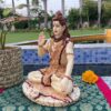 White Marble Lord Hanuman Sitting Statue with gada & Reading Book Decorative Showpiece